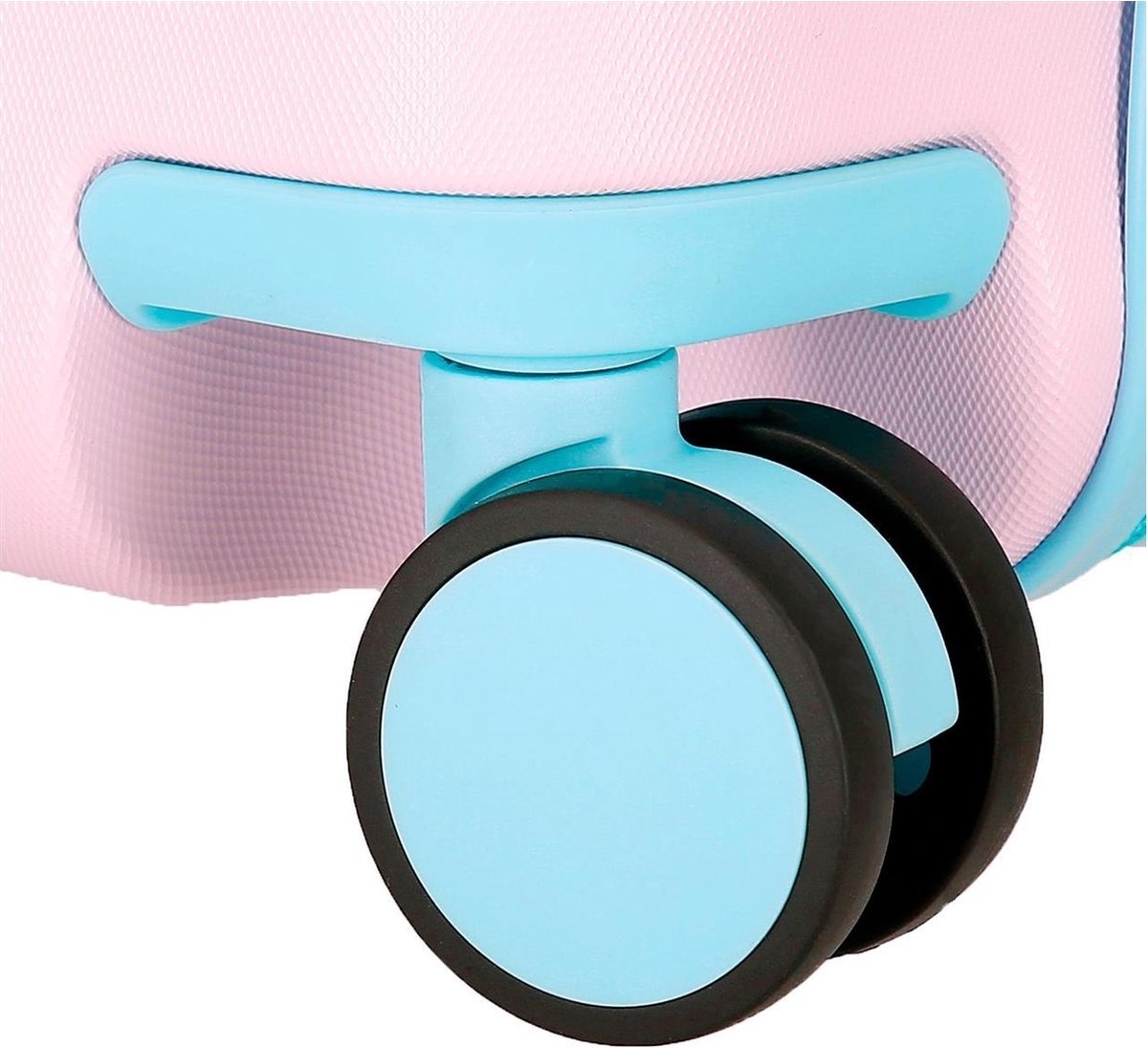 Met deze roze ABSStitch ride-on rol koffer ga je ontspannen op vakantie. Het is dé oplossing voor wanneer je met jonge kinderen reist. De Disney rol zit kinderkoffer is speciaal ontworpen om kinderen te entertainen tijdens de reis en is zowel leuk als praktisch. Tijdens het wachten op het vliegveld kunnen de kinderen op de Lilo en Stitchride-on trolleykoffer gaan zitten als speelgoed om op rond te rijden. De rol zit koffer is licht, duurzaam en stevig zodat kinderen van 3 tot ca 8 jaar erop kunnen rondrijden. Op de koffer een print met Stitch en Scrump.