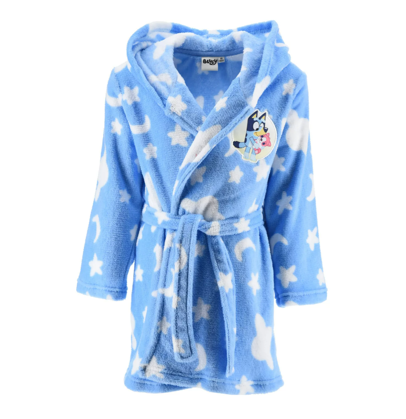 Super zachte Bluey badjas met capuchon.