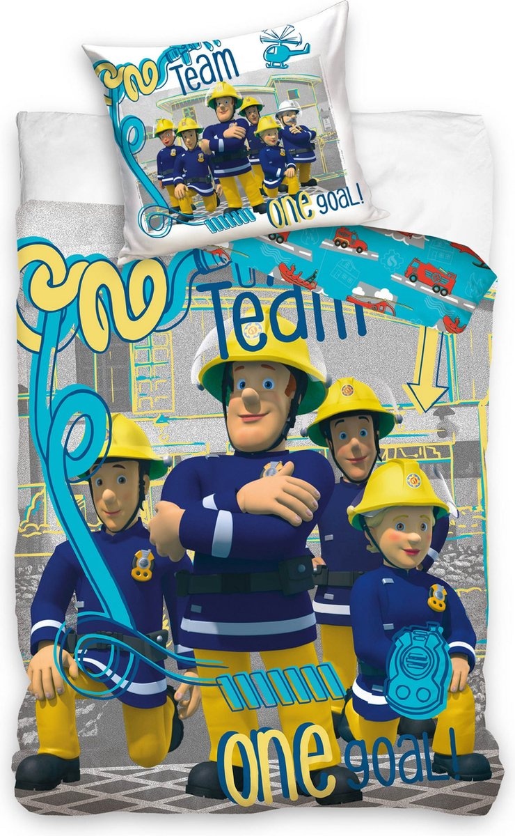 Brandweerman Sam eenpersoons dekbedovertrek met bijpassende kussensloop.