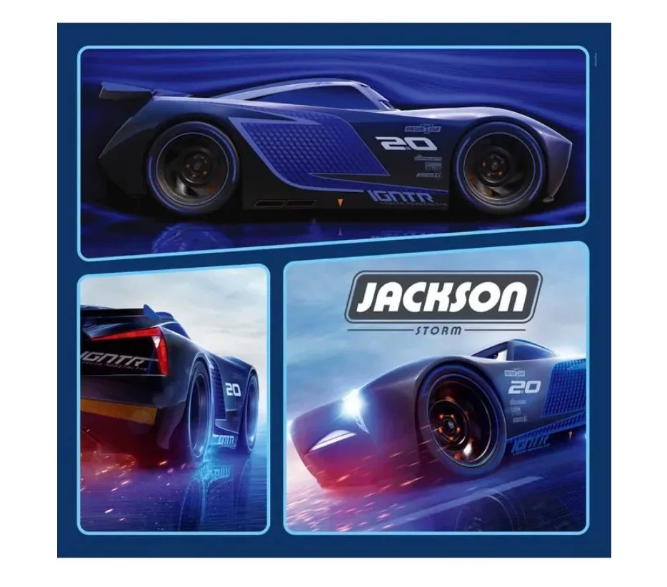 De legpuzzels hebben afbeeldingen van de rivalen Bliksem McQueen, Cruz Ramirez en Jackson Storm.