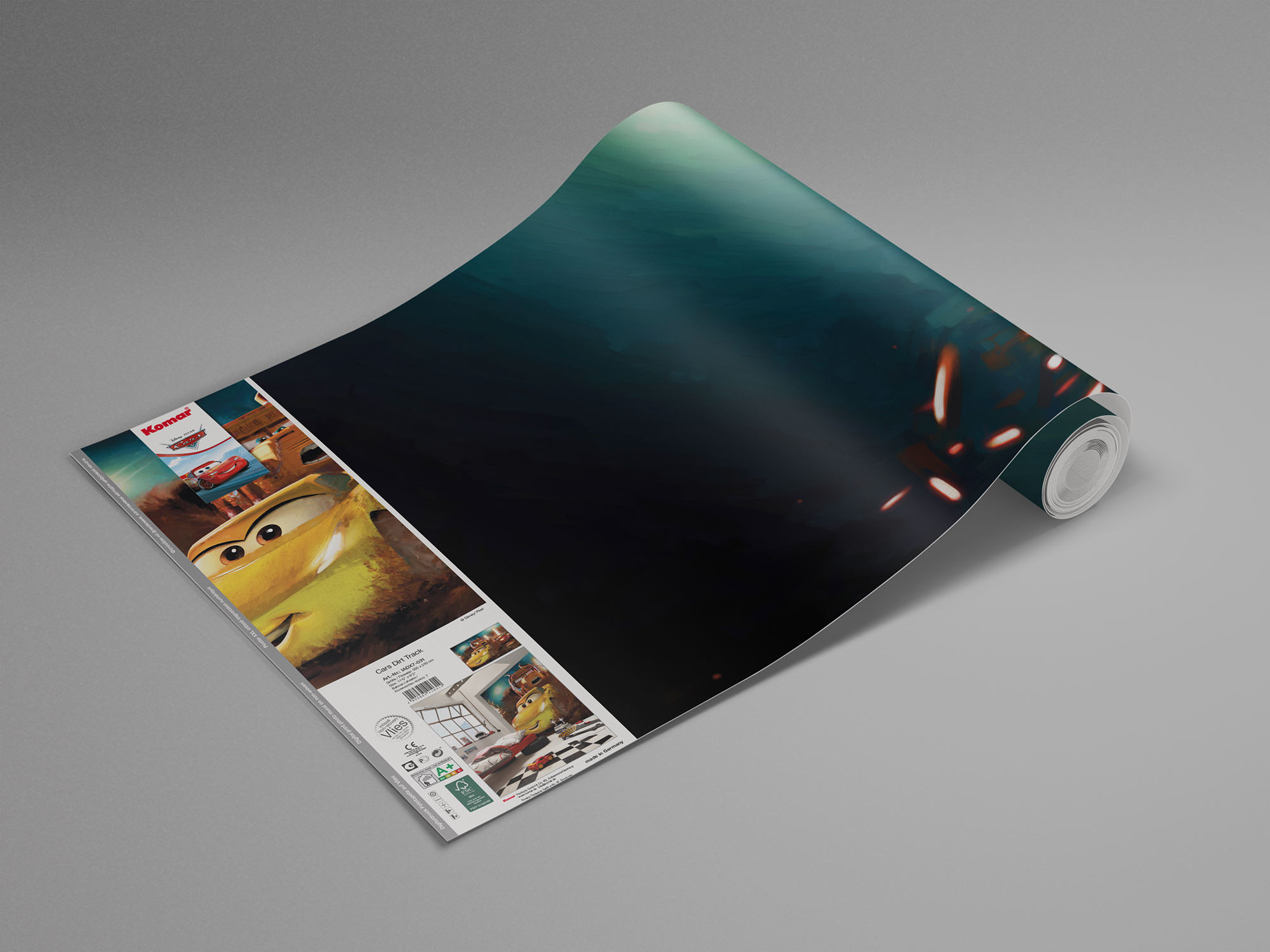 Met de snelheid die Cruz Ramirez en Lightning McQueen hier laten zien, spat het stof metershoog onder de banden; zo hard razen de twee raceauto's over het circuit voor Miss Fritter. Dit dynamische Disney Cars vliesbehang is een eye-catcher op de kinderkamer of speelkamer.