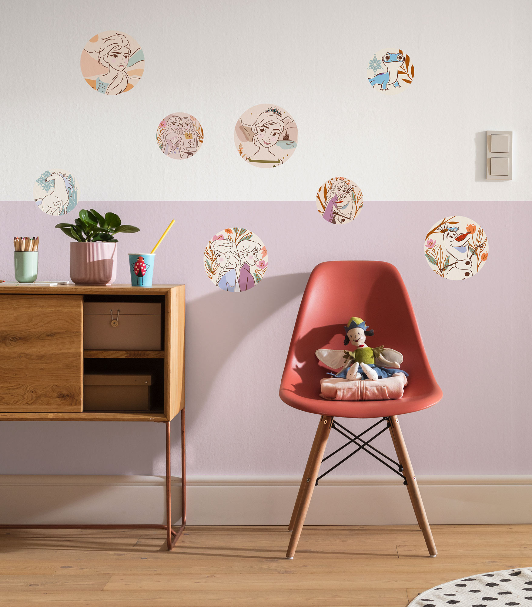 Deze Disney Frozen muursticker set bestaat uit 8 stickers en fleuren iedere kinderkamer of speelkamer op.