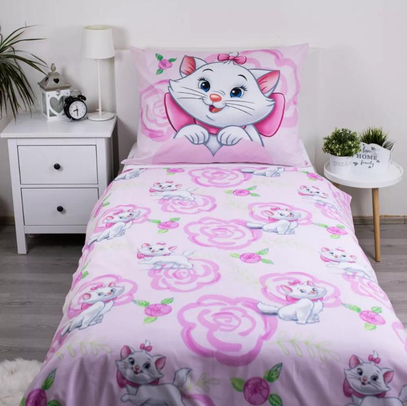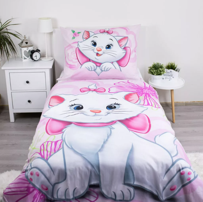 Marie Cat eenpersoons dekbedovertrek met bijpassende kussensloop.