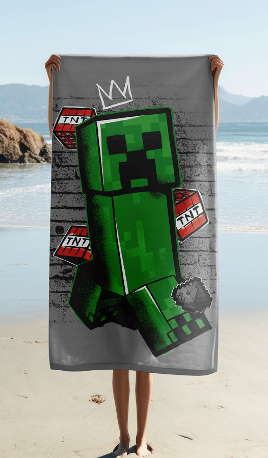 100% KatoenenMinecraft badlaken. De grote Minecraft handdoek is ideaal voor thuisgebruik, voor bij de zwemles en ook zeker groot genoeg om als strandlaken te gebruiken.