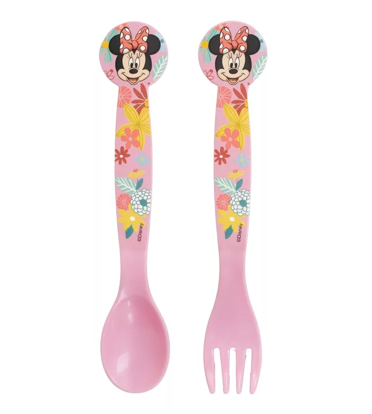 Kunststof Minnie Mouse besteksetje bestaande uit vork en lepel.