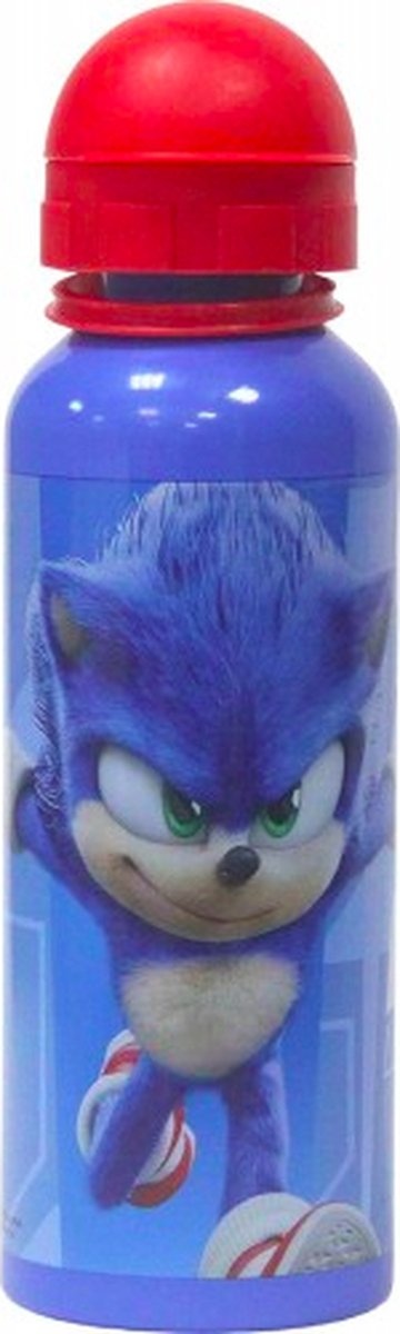 Aluminium Sonic the Hedgehog bidon met kunststof dop en rietje.