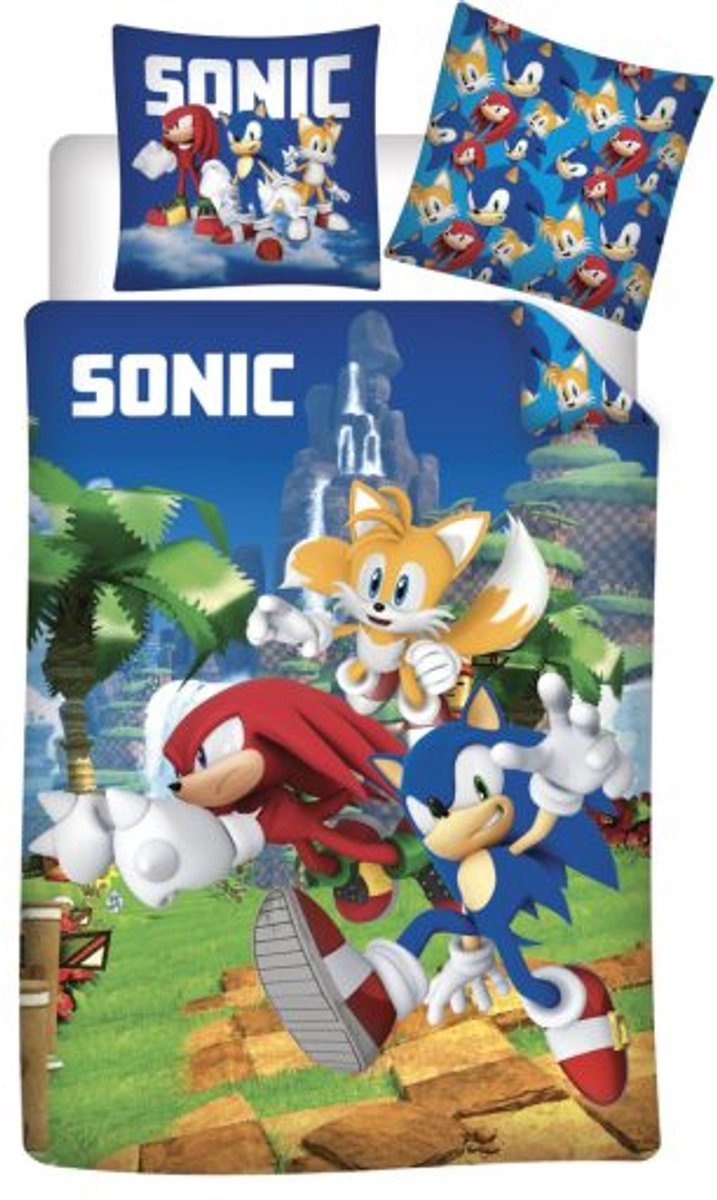Sonic the Hedgehog eenpersoons dekbedovertrek met bijpassende kussensloop.