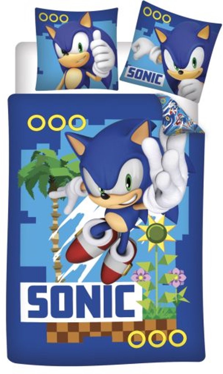 Sonic the Hedgehog eenpersoons dekbedovertrek met bijpassende kussensloop.