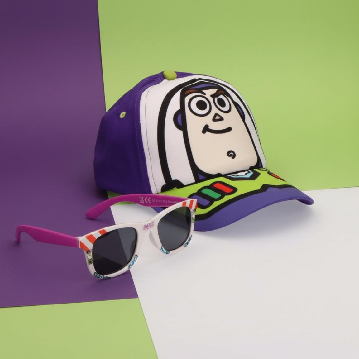 Toy Story pet met bijpassende Toy Story zonnebril. Op de baseball cap staat Buzz Lightyear.